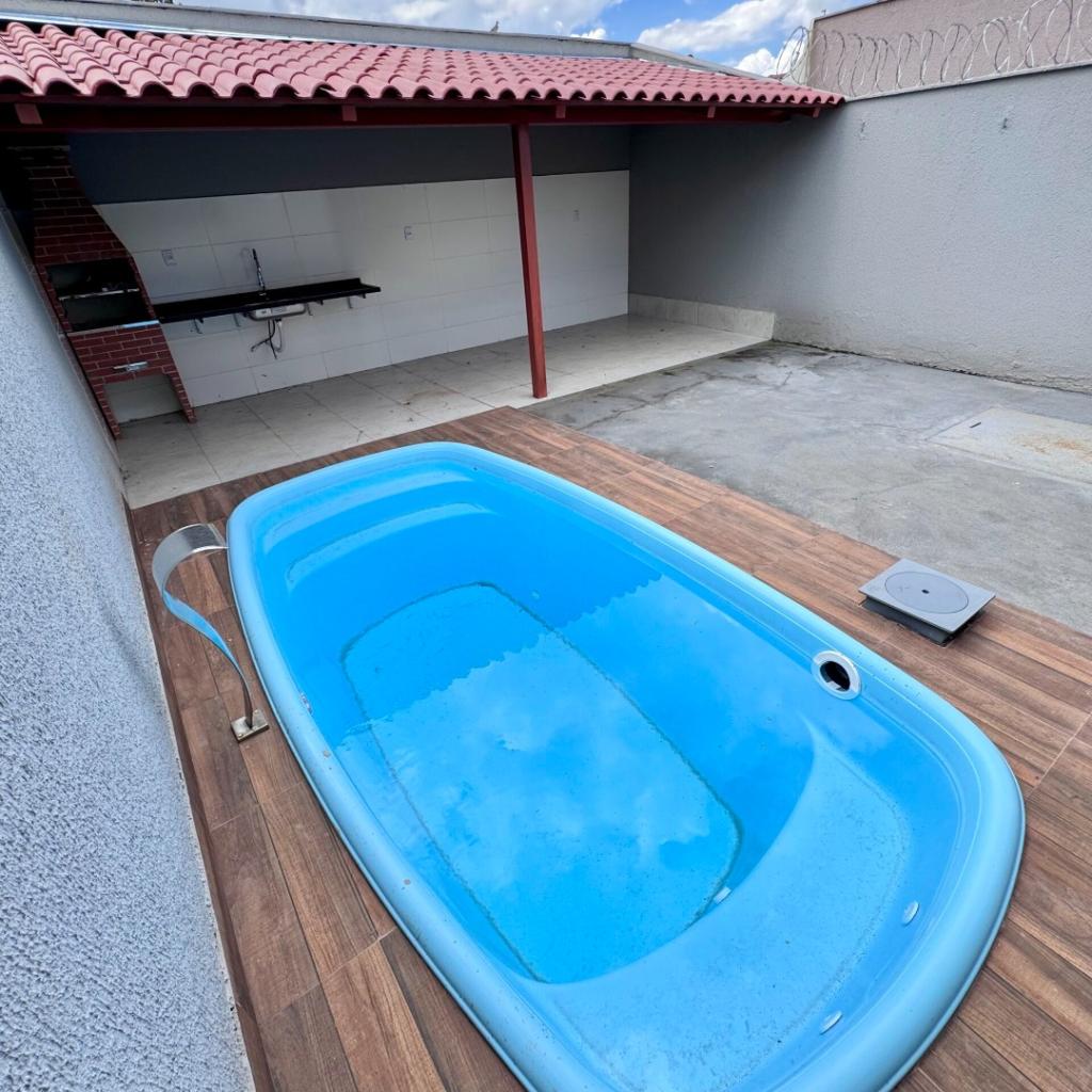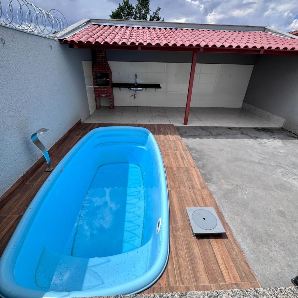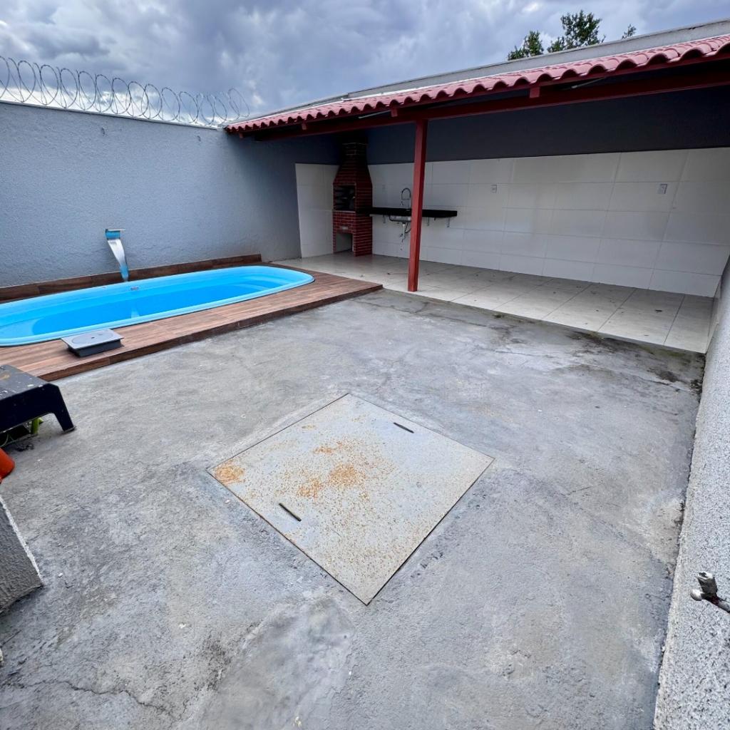 Residência possui 2 Quartos, sendo 1 Suíte, com 205m² de área total, sendo 107m² de área construída, Sala, Cozinha, Banheiro Social, Lavanderia coberta, Área gourmet com churrasqueira, bancada e piscina adulto. Possui 2 Vagas de Garagem, sendo uma coberta