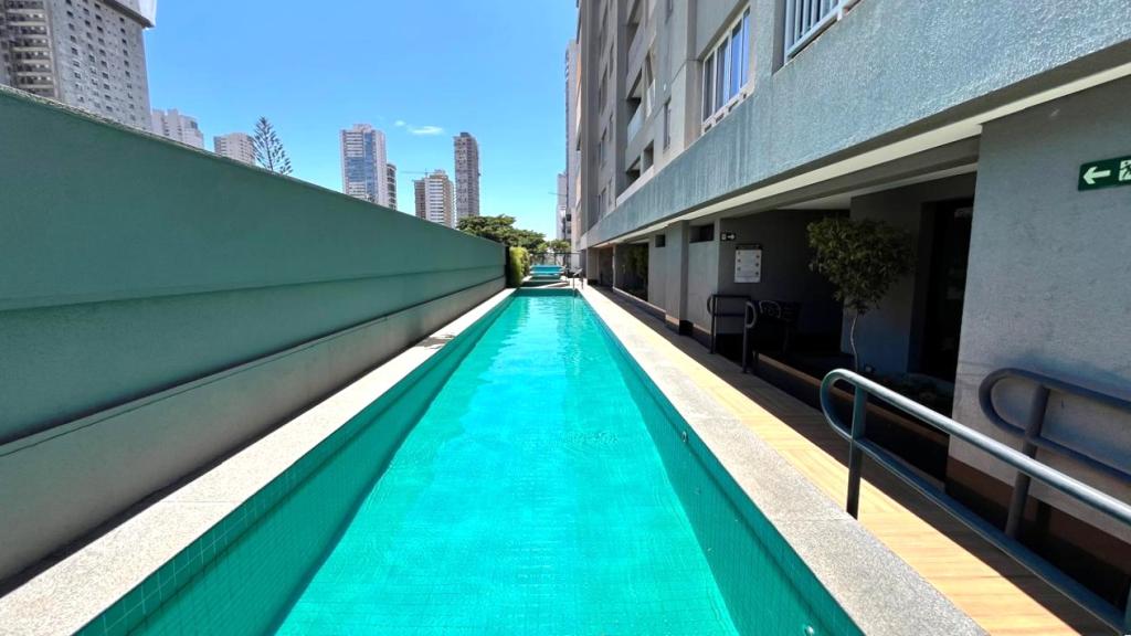 Apartamento Novo, 02 quartos sendo 02 suítes, piso em porcelanato polido, completo em armários, sala 02 ambientes, painel para TV, lavabo, cozinha americana com bancada, área de serviço, banheiro social e suíte com box em blindex. Laje técnica para condensadoras de ar condicionado, pontos para ar condicionado com tubulação de cobre já instalados. 02 Garagens de gaveta, N.17/17-A no Subsolo 03. Condomínio com Deck, Piscina com Raia de 20 Metros, Piscina Adulto com Espelho dágua, Piscina Adulto, Espaço Gourmet, Lavabo Masculino e Feminino, Copa, Festas, Festas Gourmet, Terraço Festas, Playground, Kids, Piscina Infantil, Mini Quadra, Fitness Indoor, Tatame, Fitness Outdoor, Terraço SPA, Gourmet SPA, Vestiário Masculino e Feminino, Relax/Sauna, Praça Coberta, Pub, Lavanderia. Fones (62) 3250-5500 WhatsApp (62)98404-9392.