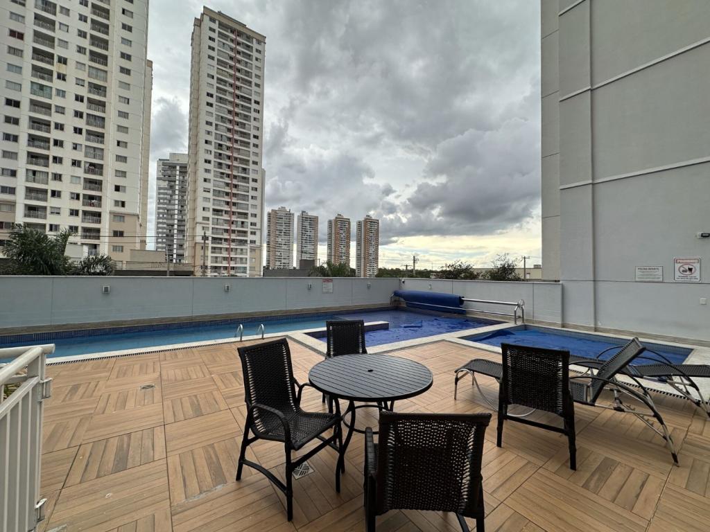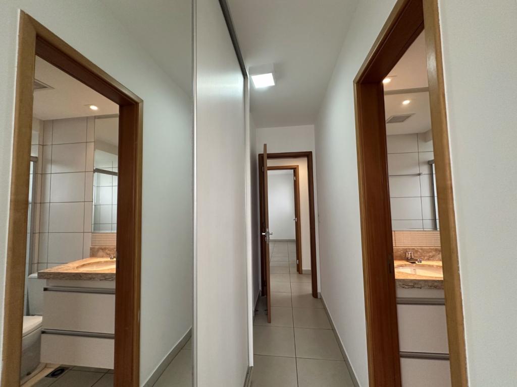 Apartamento de 03 quartos sendo 01 suíte, todos com armários, suíte com escrivaninha, sala de estar com 02 ambientes e com sacada, cozinha americana com armários e box em blindex, área de serviços com armários e acesso a sacada, ponto de ar condicionado na suíte.